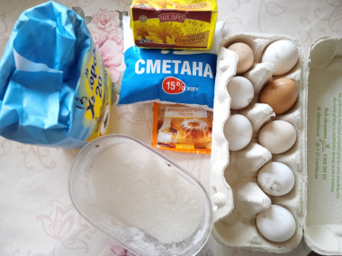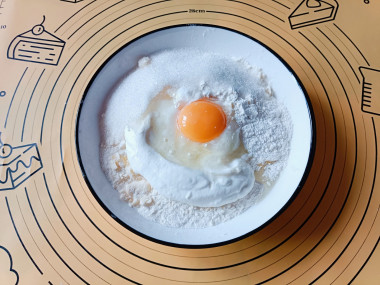 5. Введите сметану, смешанную с сахаром, и яйцо.