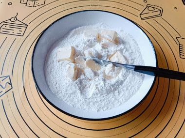 2. Добавьте масло и порубите ножом его вместе с мукой.