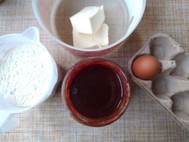 К чаю решила сделать печенье с вареньем и тертым тестом сверху. Замесила тесто, только сметану в него не добавляла и вообще количество ингредиентов уменьшила, на сайте это очень удобно делать, сразу видно сколько продуктов нужно взять.