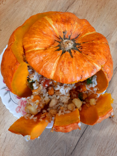 5. Поставить тыкву запекать в духовку на 200 град.до готовности.