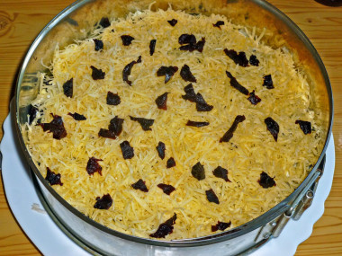 Такой слоеный салат с черносливом Дамский каприз очень хорошо подходит для праздничного новогоднего стола. В нашей семье он легко составляет конкуренцию привычному салату оливье. Я люблю верхним слоем выкладывать тертый сыр. Мне кажется, так ещё вкуснее!