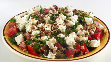Теплый салат с баклажанами помидорами и сыром - необыкновенно вкусно! Особенно понравилась идея с хрустящими жаренными баклажанами. Я ещё грецкими орешками сверху посыпала. Это просто объедение! Спасибо за рецепт!