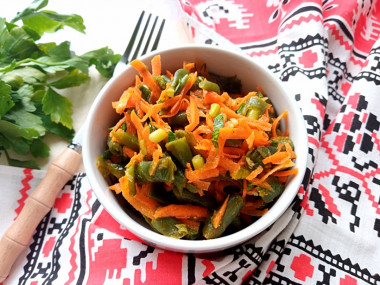Вкусный и ароматный салат из спаржевой фасоли с морковкой готов. Достаем его из холодильника и подаем на стол в качестве холодной овощной закуски.