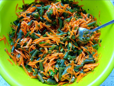Салат хорошо перемешиваем, лучше руками, фасоль и морковь хорошо пропитались специями.