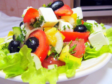 Салат из свежих огурцов и помидоров с моцареллой безумно вкусный! Я еще маслины добавила, захотелось мне так. Они идеально сочетаются с овощами и зеленью. Салат получается не хуже, чем в ресторане. Готовить его можно в будни и на праздники. Выглядит он аппетитно и нарядно. Результатом очень довольна!