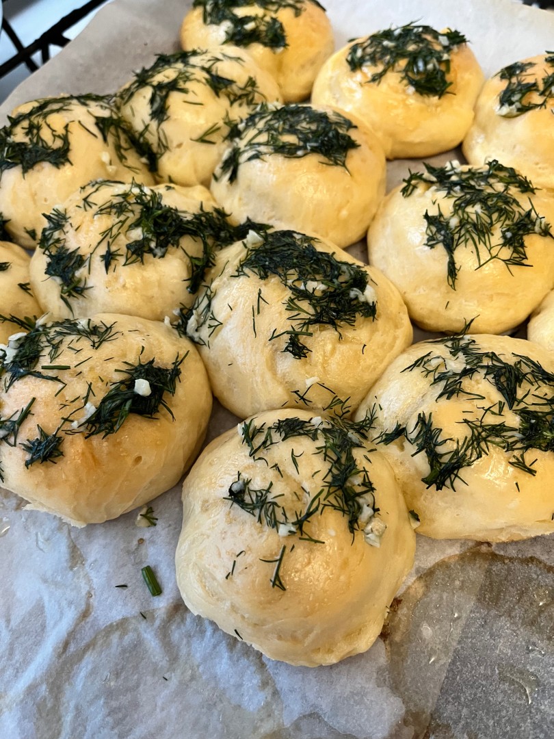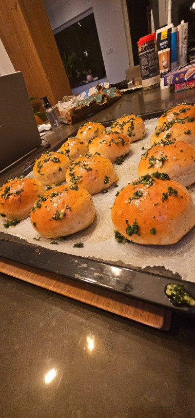 Я, если честно, не особо с ними заморачивалась и вообще хотела сделать их как можно скорее, поэтому на опару взяла холодные продукты и шапки на ней не образовалось, но как вы понимаете меня это не остановило🤣 тесто подниматься по началу не хотело и я уже успела немного расстроиться, но в итоге поднялось и пампушки вышли что надо!) печь их до сильного румянца не стала из-за особенностей духовки.