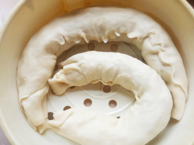 В кастрюлю мультиварки налейте 1,2 л воды. Выложите рулет на смазанный маслом поддон для пара. Установите программу "Пар" и время приготовления 60 минут. Ханум можно также приготовить в мантоварке или в обычной пароварке.