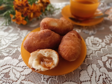 Приготовила жареные пирожки с повидлом на сковороде. Делала половину порции, количество ингредиентов уменьшила с помощью калькулятора сайта. Первым делом отварила картофель, тщательно размяла его толкушкой, вместо воды влила ещё горячий картофельный отвар, туда же добавила молоко ( подогревать его не стала- отвар горячий), сливочное масло, соль, сахар ( примерно 1,5 столовых ложки), яйцо. В результате жидкая составляющая получилась в меру теплой, постепенно влила её в муку, смешанную с сухими дрожжами. Тесто получилось мягкое, немного липнущее к рукам, но дополнительно муку не добавляла. Примерно через 40-50 минут тесто хорошо увеличилось в объеме , можно приступать к формированию пирожков. Вместо повидла у меня яблочное варенье дольками, в каждый пирожок положила 3-4 небольших яблочных дольки. При жарке пирожки хорошо поднимаются. Очень вкусно получилось! Пышные, воздушные пирожки с ароматной яблочной начинкой. Спасибо автору за рецепт!