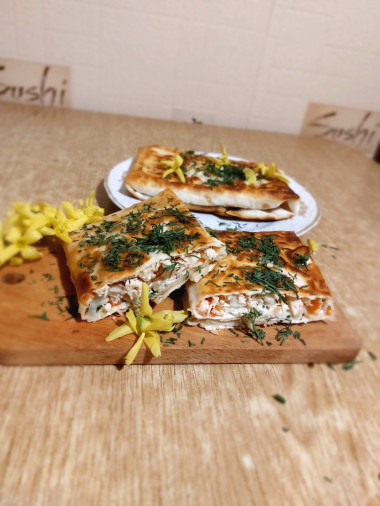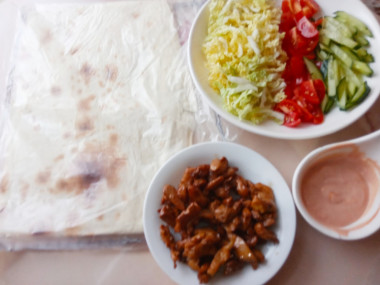 Лаваш – только свежий, мягкий (сухой будет крошиться).
