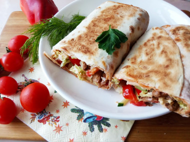 Супер идея блюда на перекус. И на работу взять можно. Есть еще такой вариант приготовления шаурмы с курицей в лаваше.