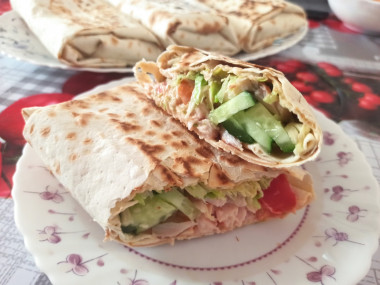 Муж с трудом осилил свою порцию, а я свою только половину. Решили на будущее, что одной шаурмы на двоих нам достаточно или сократить количество начинки в два раза. Получилось вкусно, благодарю за рецепт!