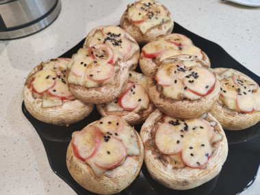 Шампиньоны, фаршированные курицей и сыром в духовке