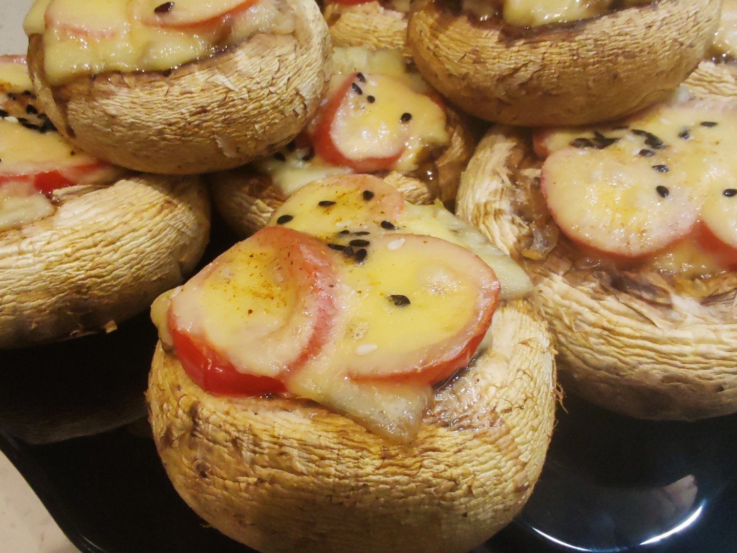 Грибы шампиньоны с сыром и помидорами в духовке готовы. Такая грибная закуска вкусна и в горячем, и в холодном виде. Приятного аппетита!