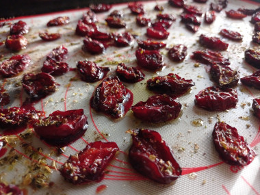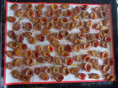 Сливы я посыпала смесью итальянских трав. У меня были плоды небольшого размера, поэтому в духовке я их продержала два часа вместо трёх.
