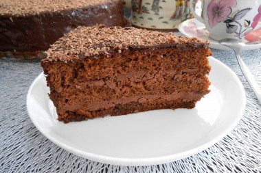 Для обмазки торта я использовала домашний абрикосовый джем, он придал необходимую кислинку сладкому шоколадному торту.