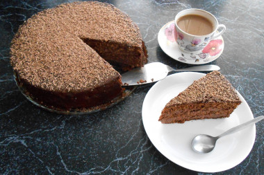 Сверху посыпала торт натертой шоколадной конфетой, чтоб уж совсем шоколадно было)