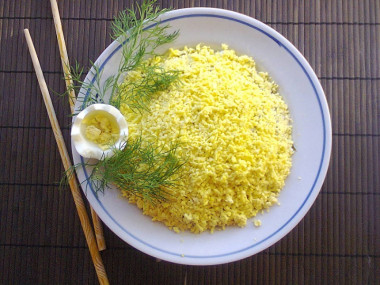 Также в качестве заправки можно использовать не только майонез, но и сметану или натуральный йогурт. Их можно взять по отдельности либо смешать с майонезом в любой пропорции на свой вкус - это снизит калорийность блюда.