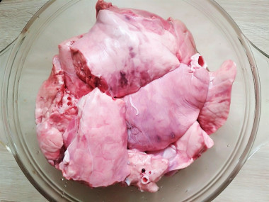 Перекладываем легкие в кастрюлю, заливаем чистой водой и варим до готовности (полтора часа).