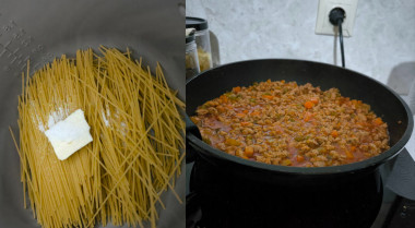 Знаю еще вариант спагетти а-ля болоньезе с говядиной.