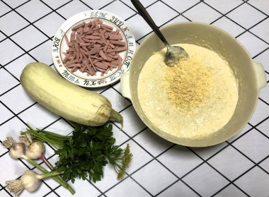 Замесить густое тесто. Муки может понадобиться больше или меньше, все зависит от размера кабачков.
