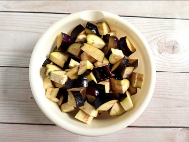 Хорошо посолите баклажан и оставьте минут на 15-20, чтобы ушла горечь.