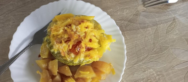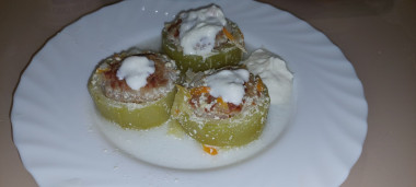 Вот и я приготовила кабачки по данному рецепту, но я решила добавить в фарш рис, ну как в ежики. Помидоры и сыр решила не добавлять, а сверху положила лук, морковь и залила сметаной. Получилось очень вкусно и сочно. Спасибо за идею запекания в кабачках.