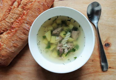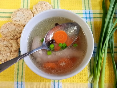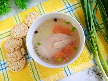 Бульон из индейки получился красивого золотистого цвета, вкусный и насыщенный. Из него я сварила простой суп, добавив картошку и макароны-спиральки. Суп получился лёгкий, но сытный. Вся семья с удовольствием им пообедала.