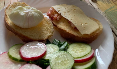 Такое яйцо обычно подают на поджаренном сухом хлебе, дополняют соусом и листьями салата.