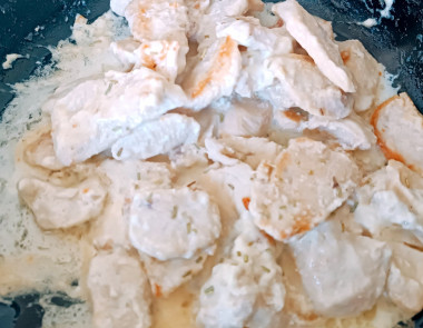 Куриные грудки в сметанном соусе на сковороде получились нежные и сочные.
