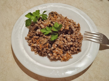 Сделала на ужин второе блюдо по этому рецепту. Гречка с печенью - это идеальное сочетание. Приготовление несложное. Выбрала свиную печень, замочила в молоке на 2 часа. Обжарила лук с морковью. Добавила нарезанную печень, обжарила по описанию в рецепте. Из специй положила паприку молотую, соль, молотый мускатный орех и перец молотый. Добавила гречку и воду, тушила около полу часа. Аромат стоят превосходный. Блюдо бюджетное и аппетитное. Гречка с печенью понравилась всем. Отличный ужин я дополнила маринованной капустой. Очень ароматно, сытно и вкусно. Хороший рецепт!