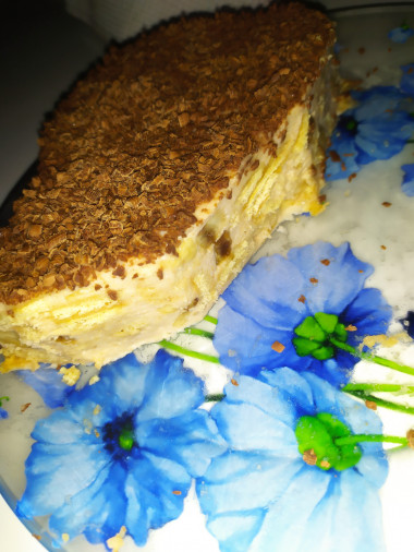 Смешно было когда прочла что банан помыть и осушить, смысл ,если кожупа все равно снимается, тортик сделала ,но ещё не пробовали стоит пропитывается