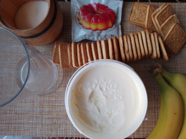 Как сделать торт без выпечки со сметаной и бананом? Подготовьте продукты. Печенье для этого рецепта подойдет любое — сладкий крекер, любое песочное, овсяное, квадратное печенье с ароматом топленого молока, сахарное, главное, чтобы оно было воздушным и хрупким. Бананы должны быть спелыми, но не слишком мягкими. Сметану выбирайте прежде всего вкусную, натуральную и качественную, любой жирности.