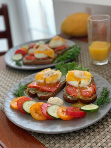 Для меня теперь это лучший бутерброд на завтрак! Я готовила именно в виде бутербродов, потому что мне так вкуснее. И понравилось абсолютно всем! Если бы не особенности приготовления и сложность "транспортировки" их вполне можно было бы подавать на праздничный стол!