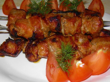 4. Через час (можно и через два, если позволяет время) мясо нанизайте на шампуры.