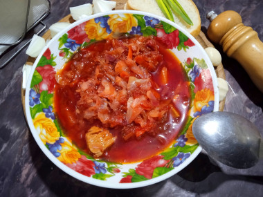 Борщ классический с свининой все очень просто, правда, не за 10 минут, но все же - результат стоит потраченного времени.