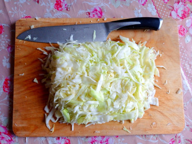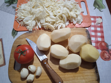Капусту нашинкуйте, чеснок очистите от шелухи и измельчите. Бросьте капусту с чесноком в кастрюлю с борщом, проварите минут 5-10.