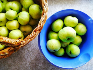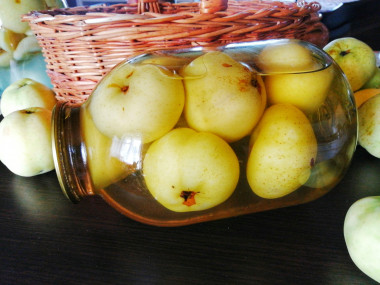 Количество яблок и воды примерное и будет зависеть от сочности яблок, а также от вашего желания сделать компот разной насыщенности. Плоды выбирайте не очень большие, средней величины.