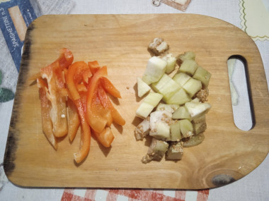 Баклажаны (я их не очищаю от шкурки) порежьте среднего размера кубиком (где-то 1х1 см).