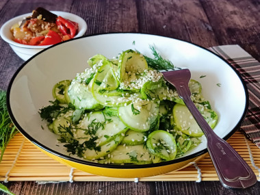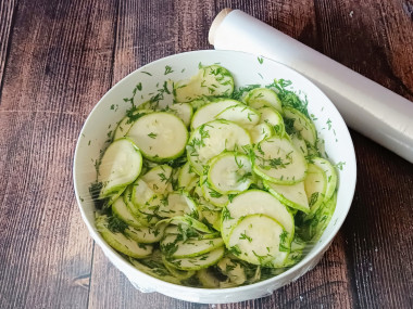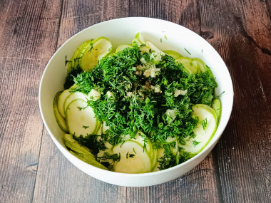Сегодня готовлю салат из молодых кабачков. За основу взяла рецепт с сайта,малосольные кабачки быстрого приготовления. Люблю этот салат за то ,что готовится он из минимум ингридиентов и не требует термической обработки.