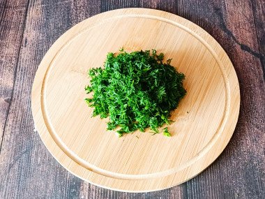 Хорошо вымойте, а затем мелко нарежьте укроп и зонтики укропа.