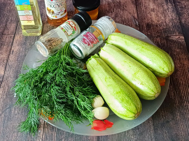 Как сделать быстрые молодые малосольные кабачки быстрого приготовления с чесноком и укропом? Сначала подготовьте все необходимые ингредиенты. Кабачки лучше брать молоденькие, размером с небольшой огурец. Но также можно использовать и большие кабачки, порезав их тонкими кружочками. По желанию можете добавить любимые приправы и специи. Соль можно взять и обычную, с морской солью просто выйдет вкуснее и полезнее.