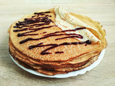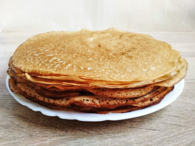Сыворотки у меня было больше, чем указано в рецепте. А муку я добавляла "на глаз" до привычной консистенции теста. Получилась стопка блинов, которую домашние смели со стола с такой скоростью, что сразу стало понятно, почему блины называются "быстрые"
