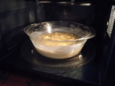 Я использовала микроволновку только для разогрева и размораживания продуктов. А оказывается ещё и печь можно, я была приятно удивлена. У нас в общежитии духовки нет, поэтому выпечку только покупали. Вчера вечером приготовила шарлотку по этому рецепту и.... получилось!) Яблок дома не было, поэтому использовала банан. И ещё одно, после тго как вынула шарлотку из микроволновки, я смазала её сверху сливочным маслом , накрыла полотенцем, через минут 15 она стала ещё красивей! Всем советую попробывать.