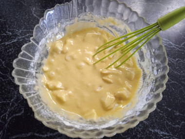 Готовое тесто не будет густое, но и не будет сильно жидким. Оно, вроде, и пытается держать форму, но у него не получается.