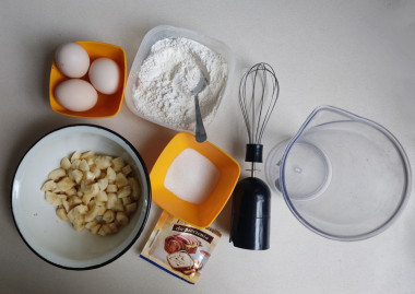 Калорийность продуктов: Яйца, Сахар, Пшеничная мука, Яблоки, Растительное масло, Сода, Ванилин