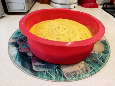 Вылила тесто в силиконовую форму, у меня она диаметром 16см, высота бортика 5,5 см.