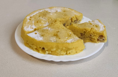 Вышла жёлтая, благодаря деревенским яйцам, вкусная, с приятным ароматом яблок. Нам с мужем как раз на две большие порции!