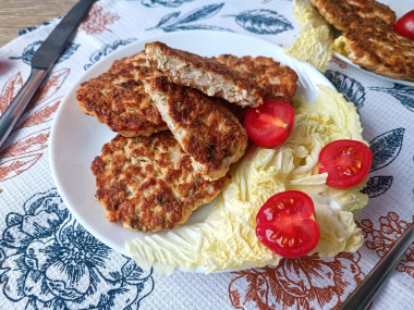 Готовые котлетки станут аппетитного золотистого цвета. Куриное мясо готовится достаточно быстро.