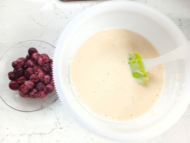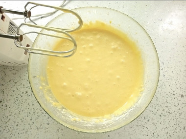 Консистенция теста должна быть жидковатой. Вместо перемешивания лопаткой можно взбивать тесто миксером на низкой скорости и недолго.