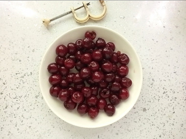 Вишню вымойте обсушите, удалите хвостики косточки и выложите в дуршлаг, чтобы стек лишний сок. Если вишня замороженная, предварительно ее разморозьте и слейте выделившийся сок.